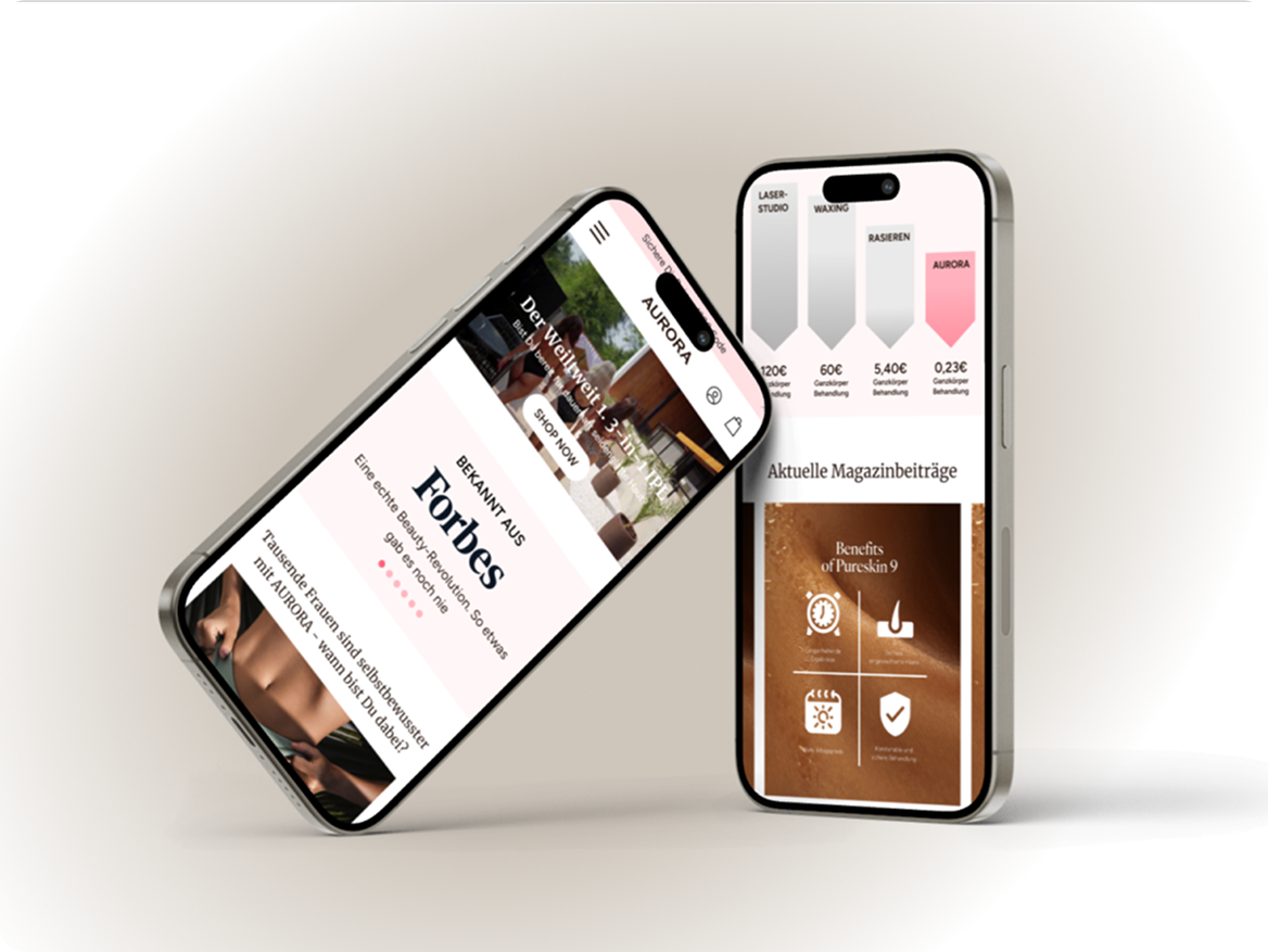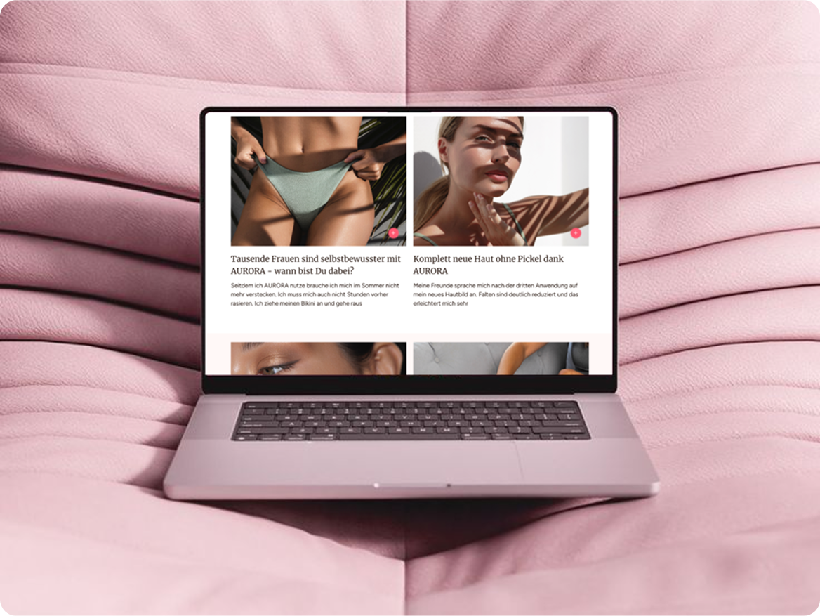 Aurora Germany überzeugt als Premium-IPL-Marke rund um das PureSkin Ultra 9. Der Shop verkauft das Gerät effektiv, SEO-Inhalte sorgen für Sichtbarkeit, Social Content bindet Kunden. Von Beratung bis Kauf entsteht ein Premium-Erlebnis. Vollständiger digitaler Aufbau für nachhaltigen Erfolg.