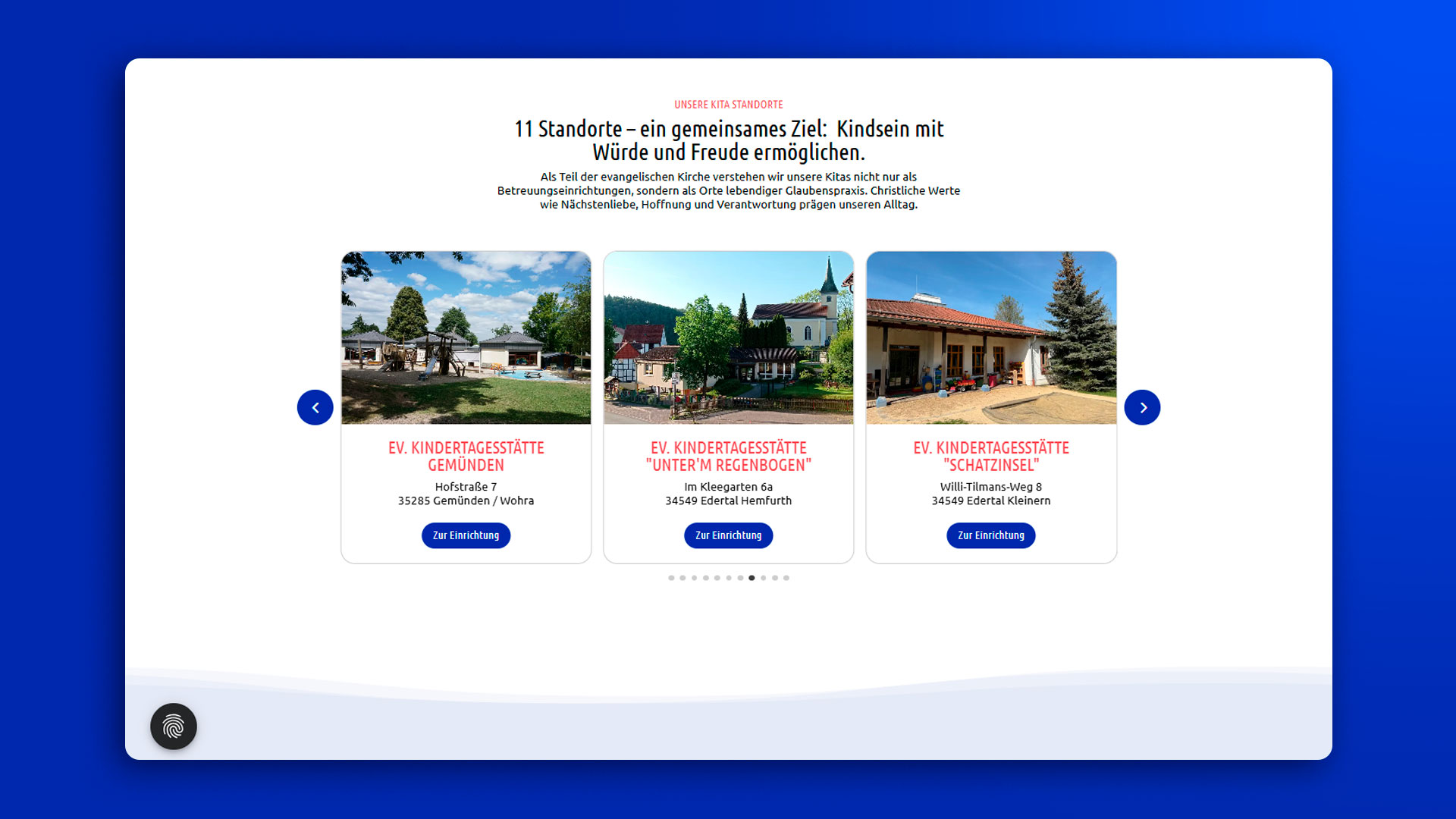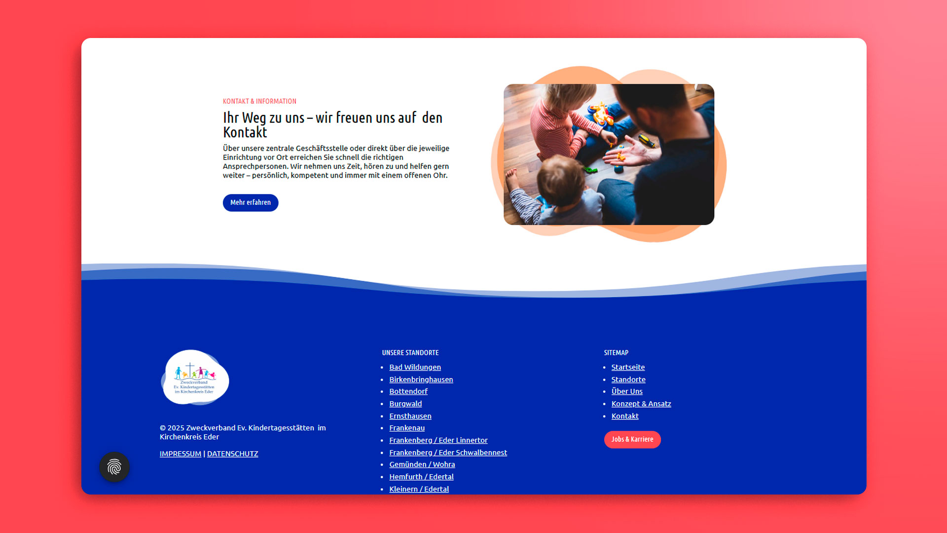 Wir schufen eine zentrale Website als gemeinsames Dach für alle elf Kitas. Klare Struktur, warme Gestaltung und intuitive Navigation verbinden den Verband mit individuellen Kita-Profilen. Jede Einrichtung erhält ihre Bühne, unter einem einheitlichen, vertrauensvollen Design. Mobiloptimiert und benutzerfreundlich entstand ein Portal, das Orientierung schafft und Werte lebendig macht.